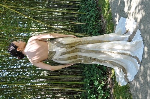 Project 1: This gown is an interpretation of the illusion of fluidity created by the marble drapery of statues. By draping organza, stiffening it while folded, and hand sewing those drapes to the base dress, the strips of organza appear fluid, but are molded in place.